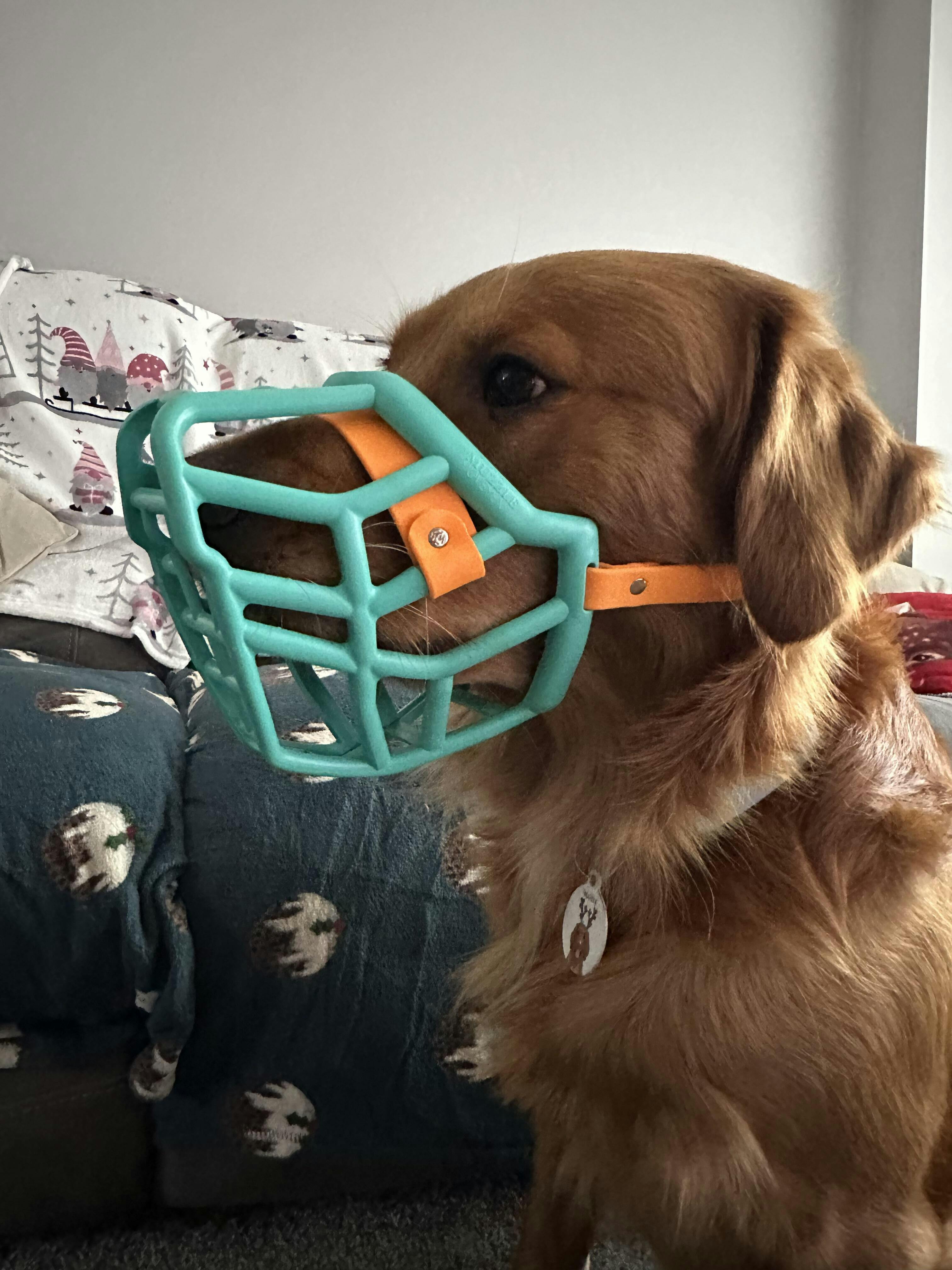 Iāve got a working line golden retriever whoās on the smaller side and Neli fits really well! I had to boil it to stretch the cheeks ever so slightly so now itās perfect. The colours are just amazing, I always hated the black muzzles he had to wear before. My dog needs a muzzle at the vet and this has made me feel more confident knowing heās more comfortable with extra pant space and he looks nicer in this one too. Very bright colours so people know to give him space. Canāt recommend enough. Iād defo recommend going for a fitting if you can saves the stress of measuring yourself and doubting it, I couldnāt as it was too far to travel as there are none in the north east but would have been easier with a fitting but still canāt fault the muzzle itās perfect.