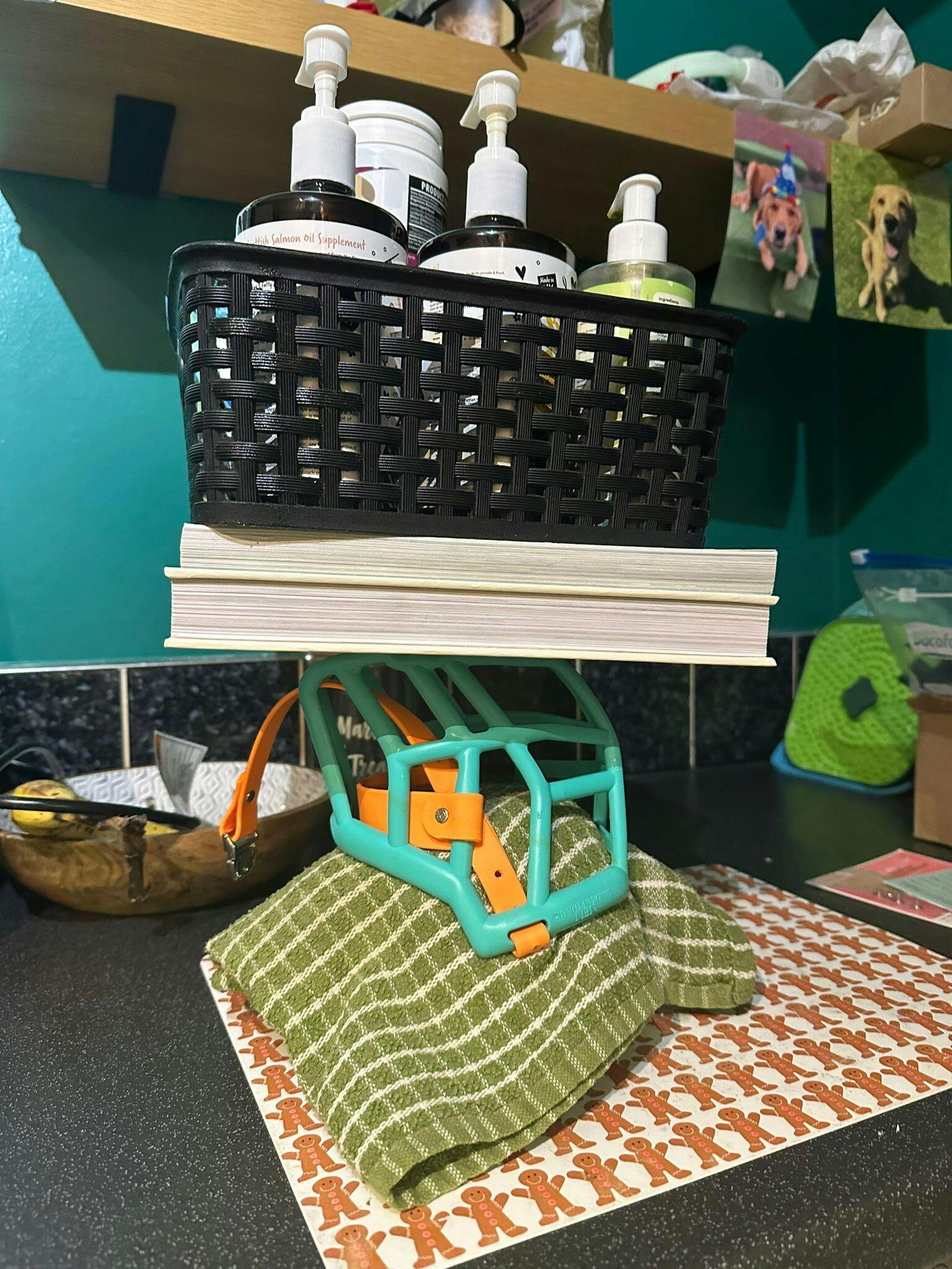 Lula has been adopted in the age of 7 to a house with a resident dog. Lula can be dog reactive, so for everybody's piece of mind she wears a muzzle when she's around her new brother. It's the best way to let them naturally bond, without constant human's supervision. The muzzle is comfy and doesn't bother Lula at all.