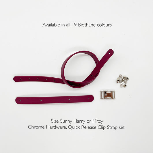 Our limited-edition black muzzles come with sleek black strapping as standard, but why stop there?Choose from 19 colours of Biothane strapping, with or without hardware, to create a look that suits you and your dog. Whether you want a bold statement or a subtle finish, our alternative straps let you personalise your muzzle with ease.