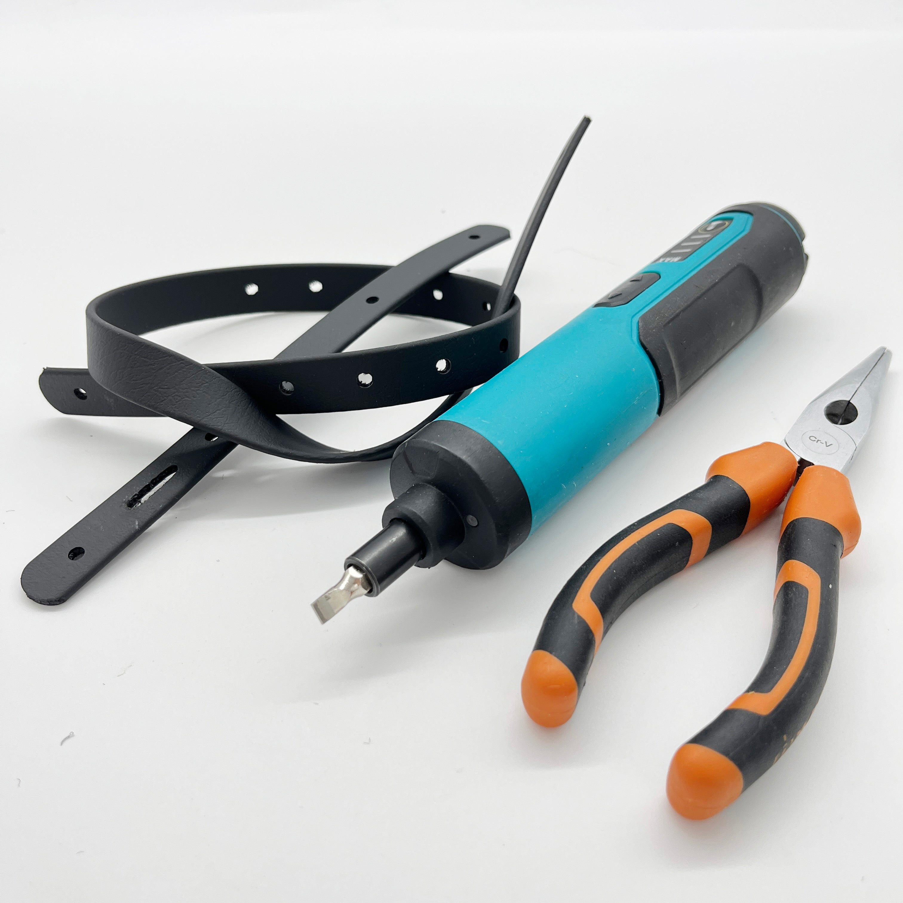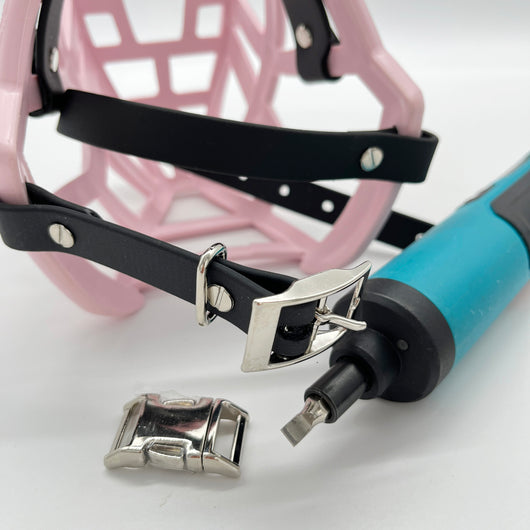 By upgrading to Chicago screws you are able to detatch your strapping and mix and match in the future. You are also better able to make small modifications to your muzzle fit, without cutting biothane.