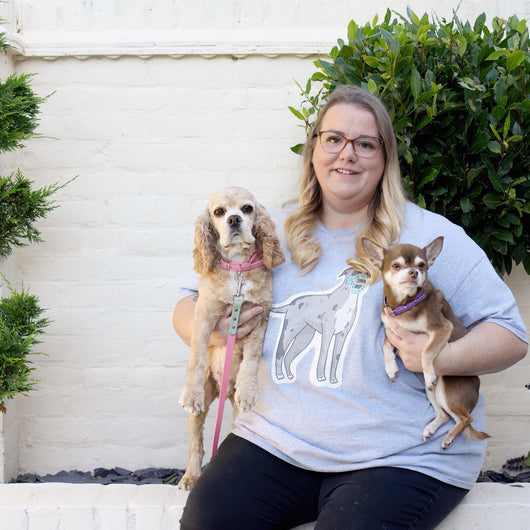 Annie shares her life with Flora the Chihuahua and Nelly the muzzled American Cocker Spaniel. Her dad also deserves a special mention for always stepping in to help, including building our custom machinery and event stand.