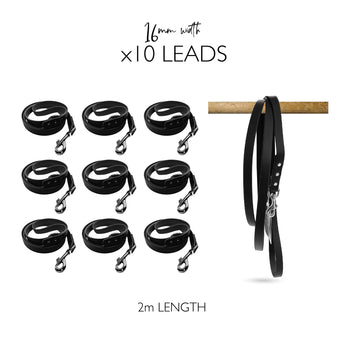Lead Bundles: Bundle Size: Sets of 10 leads. Colour Options: Opt for a single colour from our 19 Biothane® shades or select a mystery colour bundle for variety. Hardware: Each lead features durable chrome hardware, ensuring longevity and reliability. Whether you're outfitting a training facility or expanding your retail offerings, our Biothane® leads and long lines provide a reliable and stylish solution that aligns with professional standards and canine welfare.