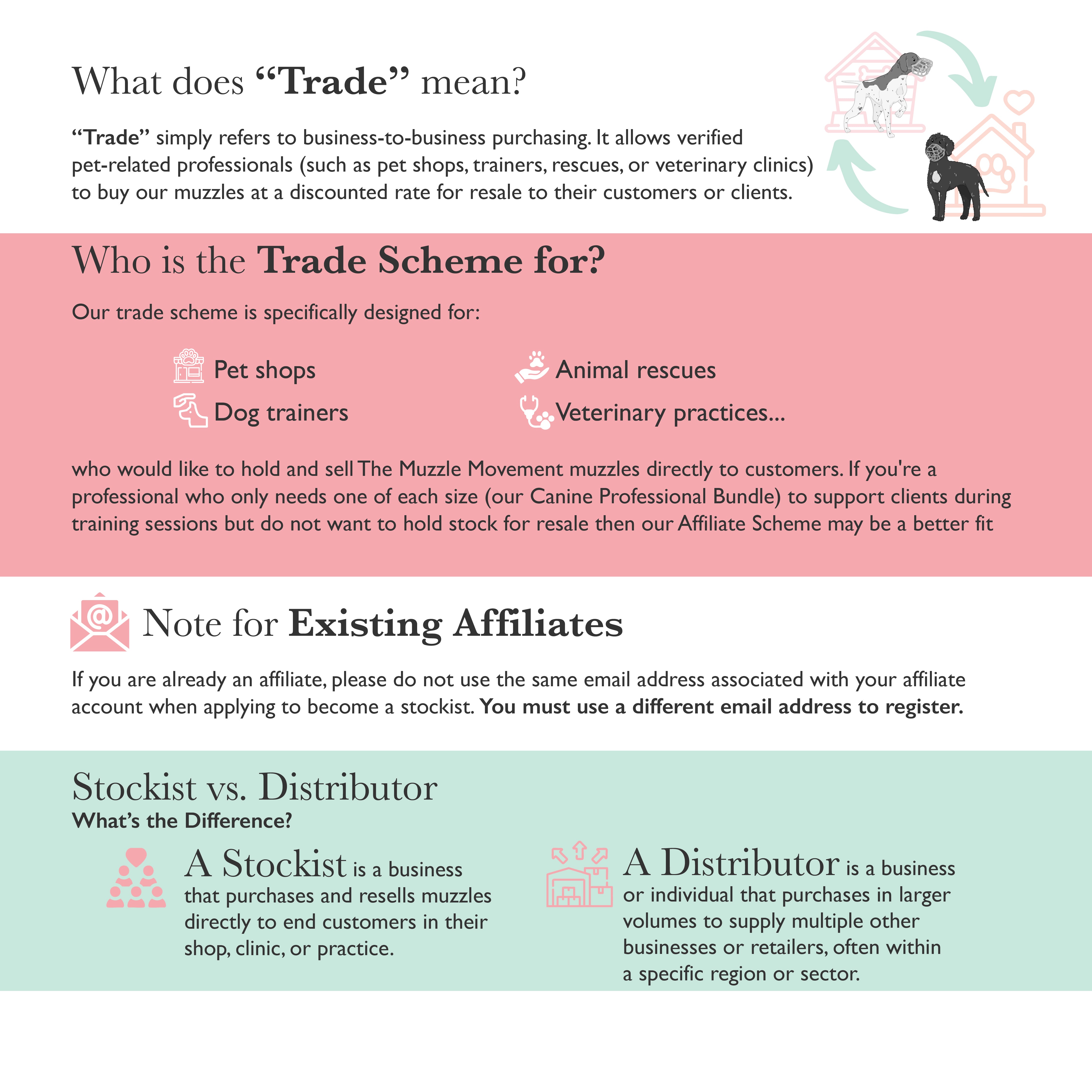 We are committed to supporting only kind and ethical businesses that share our passion for force-free training. As such, we do not work alongside businesses that sell or promote aversive tools. This includes but is not limited to shock collars, prong collars, choke chains, citronella collars, pet correctors, or any similar equipment.All businesses are thoroughly vetted prior to acceptance. If it is found that aversive tools or methods are being promoted, our agreement will be immediately terminated. To avoid disappointment, please do not apply if you currently sell or plan to sell any of the above items now or in the future.